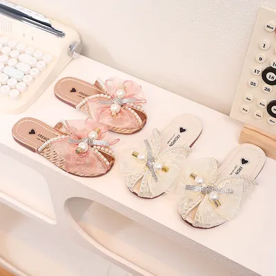 Butterfly Bow Pearl Slippers