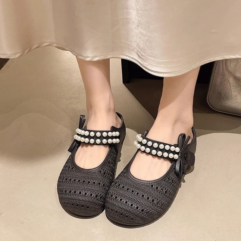 Fashionable Two-Flower Metal Buckle Slippers