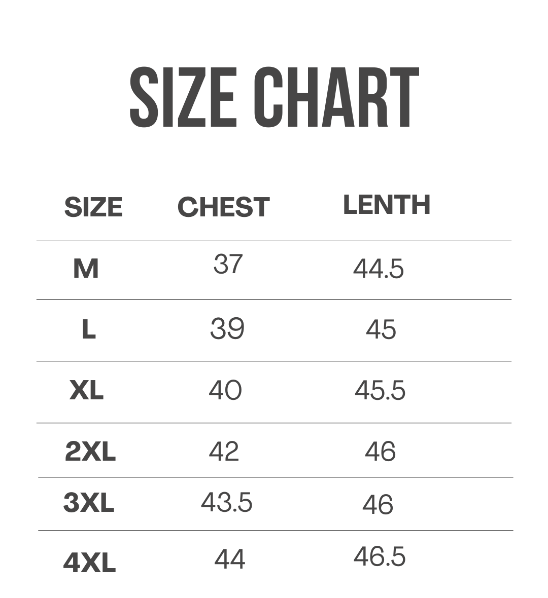 (42)chest(52)length